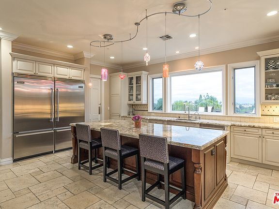 Feel like you're on vacation year round! This spacious 4BR plus optional 5th bedroom, 6 bathhome was completely rebuilt in 2005 using commercial grade steel construction. Sitting at theend of a quiet cul-de-sac in the hills of Tarzana, this home was built with an entertainer in mind.Indoor/outdoor living is the focus - huge chef's kitchen indoors with massive island and top ofthe line appliances and a grillmaster's dream outdoor kitchen in back. Take in the 180 degreepanoramic valley and city views from your 1800sf deck and grotto-style saltwater pool. Fourbedrooms have ensuite bathrooms, with a bonus 5th BR/exercise room. The highlight of thismagnificent home is the temperature controlled wine room with space for 1200 bottles and themaster bathroom, with enormous his and hers closets, soaking tub and steam shower.Spacious rooms, beautiful finishes, tranquil outdoor spaces make this house feel like home.