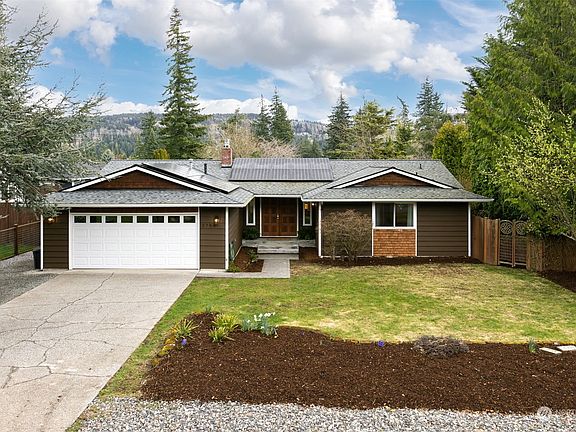 Enjoy the ease of single-level living! The inviting living room boasts vaulted ceilings, fireplace & windows flooding the space w/natural light. Fall in love w/the kitchen w/ample counter space & new energy-efficient SS appliances. Dining area is perfect for hosting gatherings & creating memories you'll cherish. Retreat to one of 4 bedrooms, including 2 potential primary bedrooms w/en-suite baths (or turn one into WFH office). Sun-drenched backyard features a trex deck, storage shed & plenty of room to play. Experience eco-friendly living w/premium solar panels & high-end VRF heat pump, minimizing energy expenses. Park w/ease in the 2-car garage. Close to Lake Whatcom & Barkley Village & steps from Northridge Park & the trail system.