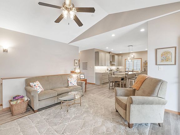 This ranch-style condo offers easy living in an unbeatable location, just minutes from shopping, restaurants, and medical services. From the moment you arrive, the stunning front porch with epoxy-coated concrete sets the tone—whether you’re watching the world go by, diving into a good book, or simply soaking up a beautiful day. Step inside to find a spacious living room with vaulted ceilings, creating an open and inviting feel—perfect for gathering with deep conversations with friends or simply unwinding after a long day. Craftsman shutters add character throughout the main floor, offering both style and function. The fully remodeled kitchen is a showstopper, featuring sleek gray cabinetry, quartz countertops, a built-in desk for keeping life organized, a coffee bar to jumpstart your mornings, and a pantry to keep everything tucked away. The oversized island, complete with a sink, is ideal for casual meals or hosting guests. A convenient laundry room connects the kitchen to the garage, which also showcases epoxy flooring for an extra clean and polished space. The main floor features a spacious primary suite with a walk-in closet, dual vanities, and an accessible walk-in tub/shower. The second bedroom is bright and inviting, with a generous closet and a perfect for restful nights sleep. A versatile bonus room can serve as a guest bedroom, home office, or hobby space—whether you need a quiet place to work, a creative studio, or a welcoming retreat for visitors. This room also features a large closet and direct access to the deck, patio, and backyard, making indoor-outdoor living a breeze. A second full bathroom, featuring beautiful gray cabinetry and updated flooring, rounds out the main level. Downstairs, you'll find a spacious family room with daylight windows, perfect for game nights, a movie marathon, or extra lounging space. A third full bathroom adds convenience, and the generously sized storage room provides plenty of space. With no HOA or age restrictions, this home is all about convenience and flexibility. Don’t miss out on this fantastic opportunity—schedule your showing today!