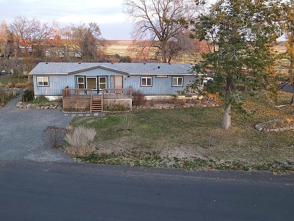 Welcome home to this spacious Valley-built double-wide w/ a new roof! Situated on desirable corner lot surrounded by mature trees and garden space. This 3-bed, 2-bath home features a generous open kitchen perfect for entertaining, and a large primary suite with a soaking tub, separate shower, double sinks, and a huge walk-in closet. Enjoy outdoor living on the expansive entry deck with stunning views of Banks Lake and the dramatic surrounding cliffs. A bonus studio with its own bedroom and bathroom is located in the detached garage—ideal for a home office, guest space, or creative pursuits. Abundant fruit trees and established garden areas complete this special property.