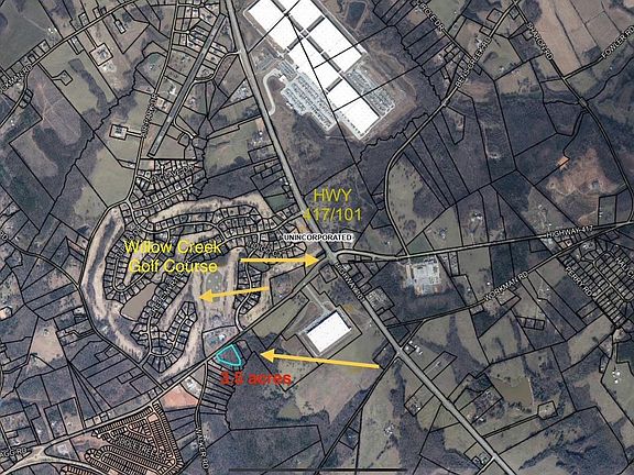 This 3.5-acre property offers an incredible location with endless potential for both residential and commercial use. Positioned across from Willow Creek Golf Course on Highway 417, the land is situated in a rapidly growing area just 4 minutes from the future BMW plant and less than 3 minutes from Five Forks. This prime tract has over 250 feet of road frontage and is perfect for subdivision, a family compound, or your next investment project. The property features a great layout with partially cleared land and mature hardwood trees. Spartanburg County classifies Highway 417 as an “artery” road, providing both residential and commercial development options. The area is booming, with over 3,000 new homes being built within a 4-mile radius, and the nearby BMW plant slated to create over 500 jobs by 2026. In addition to its proximity to major roads like Highway 101 and I-85, this land is less than 15 minutes from GSP airport, downtown Greer, and Simpsonville. The location is ideal for storage units, RV communities, mixed-use development, or industrial projects, making it a fantastic investment opportunity. As Spartanburg's rapid growth continues, this parcel sits at the center of it all, in one of South Carolina’s most exciting areas for development.