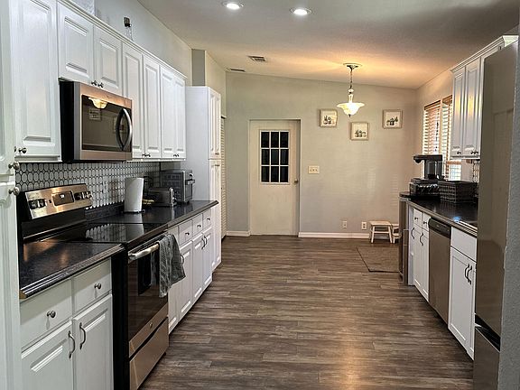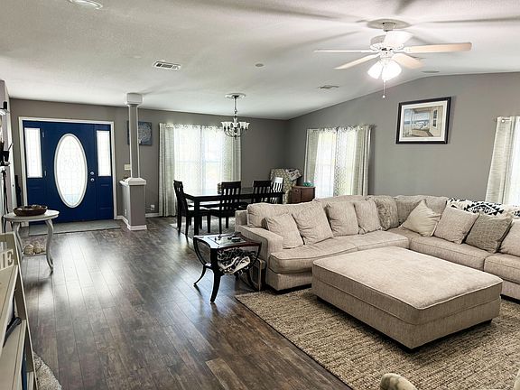 Welcome to your new home featuring vaulted ceilings in the living room and built-in surround sound. The galley kitchen leads to a 1-car garage, currently transformed into a man cave and home office. The spacious master bedroom boasts a newly remodeled closet and a newly remodeled master bath (2020). The corner lot is surrounded by mature trees for privacy. A double car drive leads to your front covered patio. The private fenced yard is a true oasis, complete with a Koi Pond, pergola, and an outdoor grilling area equipped with a TV - perfect for entertaining. Additional features include hurricane impact windows installed in 2015, a professionally encapsulated crawl space in 2019, and a new AC system installed in 2016. Don't miss out on this gem - your perfect home awaits!