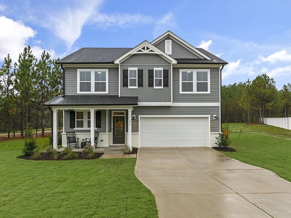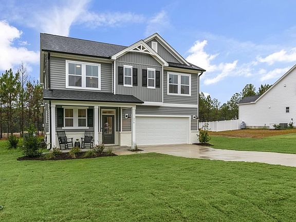 iscover the Holly Farmhouse — a thoughtfully designed two-story home set on over a half-acre homesite. This spacious plan includes 4 bedrooms, 3.5 baths, and flexible living areas designed for modern lifestyles. The open main level features a family room flowing seamlessly into the gourmet kitchen, complete with quartz countertops, tile backsplash, walk-in pantry, and a separate messy kitchen for extra storage and prep space. A mudroom with custom bench and cubbies connects to the innovative Smart Door Delivery Center, keeping packages secure and out of sight. A first-floor office provides a quiet retreat for work or study. Upstairs, the owner's suite offers spa-like luxury with dual walk-in closets, a tiled shower, and direct access to the laundry room. Secondary bedrooms also include walk-in closets, ensuring everyone has plenty of storage. A rear patio overlooks the large, flat backyard, perfect for entertaining or relaxati