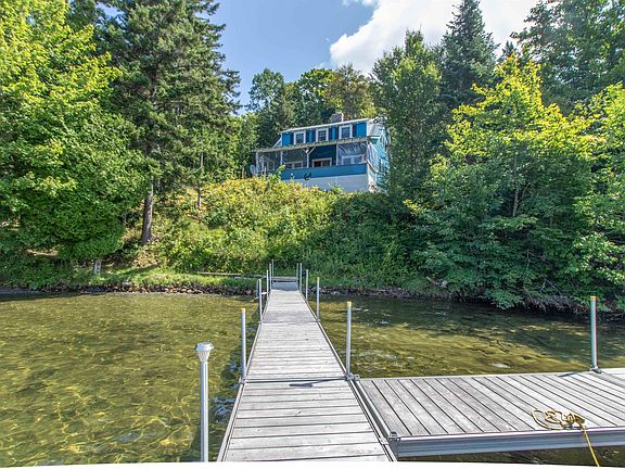 Perched on a hillside along the southeast shore of Seymour Lake is where you’ll find this charming cottage. Set on a .41-acre lot, the property boasts direct views of Elan Hill, breathtaking sunsets, and a private dock with deep water access—ideal for swimming, boating, and fishing in the 1,769-acre spring-fed lake. Nature lovers will relish the opportunity to spot loons, eagles, and other wildlife from the 32x10’ covered porch that runs along the front of the cottage. Inside, the cottage features some beautiful wood floors and knotty pine walls, in keeping with the cottage’s 1960 origin. However, the kitchen has recently been updated with all new cabinets and appliances, and both ¾ baths have been tastefully remodeled. At the heart of the cottage is the 30x13' combined living and dining room, anchored by a stately brick fireplace with a woodstove insert, perfect for warming up chilly evenings. On the second level is a cozy seating area, the primary bedroom with a private balcony, plus 2 additional bedrooms. The fourth bedroom is located on the main floor. Along with all the water activities awaiting just outside your door, there are numerous hiking trails in the area, or explore winter sports with the VAST trail nearby, and Burke Mountain and Jay Peak both within a short drive. For shopping and dining, the Morgan Country Store & Cafe is 5 miles away, with additional options in Island Pond (7.5 miles) and Derby (12 miles). Come discover the joy of elevated lakefront living.