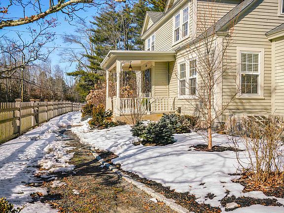 The perfect blend of history & elegant modern living, this gorgeous 1829 cape exudes character & quality with every inch! From the pretty covered front porch, step into a welcoming foyer graced with turned wood staircase & wide pine floors that run throughout both levels. The spacious dining room is centered on a wood fireplace with Victorian mantle, built-in cabinets & richly patterned wall covering...the perfect setting for dinner parties that linger. Step into the tastefully updated kitchen with soapstone apron sink & counters, Wolf® induction range, custom lighting &room for a large eat-in island. An on-trend family room beckons with aged brass sconces, Appalachian barn oak floors, whitewashed oak ceiling & flooded with natural light. Also on floor 1, a lovely living room works beautifully as a first floor primary suite with a mahogany wardrobe & connected, via an oversized dressing/laundry room, to a magazine-worthy bathroom with custom tiled shower & claw foot tub. Upstairs are 4 more bright bedrooms & a tastefully updated bathroom with tiled corner shower. Set on nearly 3 magical acres of natural woodland & landscaped grounds, a tree-lovers delight with over 40 species! Enjoy original stone walls & granite stone patios with an outdoor fireplace & custom lighting. Recent updates include new leach field, windows, irrigation & standby generator. Close to commuting, shops and top-rated schools--don't wait!