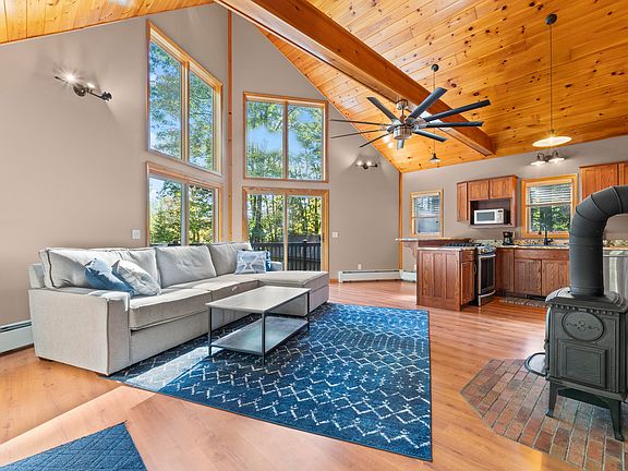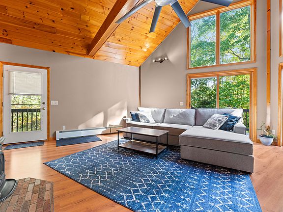 Beautifully Contemporary home on a very private 1-acre lot offering a scenic rural setting and easy access to I-95 and I-295. Built in 2004 with quality craftsmanship and building materials, this meticulously maintained property offers recent improvements including granite countertops in the kitchen; SS appliances; bathroom fixtures; and a full-house on-demand generator. The open-concept first floor features a stylish and striking eat-in kitchen and a warm and welcoming living room with a wood stove; gorgeous knotty-pine cathedral ceilings; and attractive flooring. Dramatic walls of windows bring the outdoors in and sliding glass doors lead to a wrap-around deck—a perfect place for outdoor entertaining or relaxing with a cup of coffee in the mornign. Two bedrooms, a full bath, and a laundry closet complete the first level. Upstairs on the second floor, the private primary bedroom ensuite boasts vaulted ceilings; a skylight; and a sliding glass door that leads to a private balcony. The lower/basement level is comprised of two sections. One section features a spacious family or media room with a sliding glass door that provides access to a patio and deck with hot tub. The other section is a traditional ''full basement'' with utilities and ample dry storage. Additional highlights include a detached two-door garage (tandem parking for two vehicles on one side and single on the other), and a substantial outbuilding ideal for a workshop or studio. Don't miss this impressive and exceptional property!