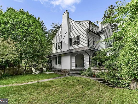 This stately and fully updated 1920s Colonial offers over 3,100 square feet of classic charm blended with modern amenities in one of Wynnewood’s most walkable and desirable neighborhoods. Set on a private half-acre lot with mature landscaping, the home features tall ceilings, original hardwood floors, elegant moldings, custom cabinetry, and abundant natural light through newer Pella and Marvin windows. A formal living room with a fireplace and French doors opens to a large bluestone terrace, while the kitchen connects seamlessly to a vaulted family room addition — creating ideal circular flow for entertaining. A formal dining room, powder room, and lower-level mudroom with dog wash add functionality and comfort. Upstairs, the expansive primary suite includes two walk-in closets and a spa-like bath with soaking tub, glass shower, and double vanity. A guest suite, large laundry room, and three additional bedrooms complete the upper floors, along with a stylish hall bath with clawfoot tub. Enjoy rolling lawns, off-street parking for multiple cars, an attached garage/workshop, and extensive upgrades including 200-amp electric, new HVAC, and a newer water heater. Just steps from Suburban Square, Narberth, regional rail, top-rated Lower Merion schools, and more — this move-in-ready home offers timeless elegance and everyday convenience in the heart of the Main Line.