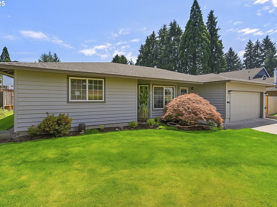 OPEN HOUSES: SAT 11/15 1-3PM. Welcome home to this well-maintained 4 bedroom, 2 bath single-level home tucked in a quiet cul-de-sac. This property offers excellent potential for multigenerational living, mid-term or long-term rental opportunities, and flexible income-producing uses such as a possible adult care or group home setup (buyer to do their own due diligence). Inside, the spacious floor plan features all four bedrooms on one side of the home, including a primary suite with an attached bathroom, along with an open main living area. The updated kitchen includes Corian countertops, stainless steel appliances, and newer flooring throughout the primary living spaces. Outside, enjoy a beautifully manicured yard with mature apple and pear trees, kiwi, blueberries, a fenced backyard, garden area, and a covered patio perfect for entertaining. Additional highlights include RV parking, a tool shed, attached 2-car garage, AC, cedar siding, a new roof in 2020, and new exterior paint in 2020. Conveniently located near McKay Golf Course and close to downtown Hillsboro.
