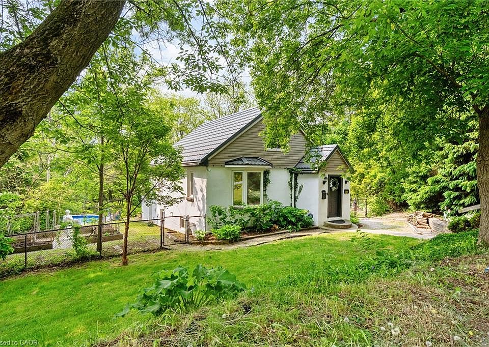 Cottage Living in the City-A Hidden Gem at the Escarpment. This newly renovated 2+3 bedroom, 3-bathroom home blends modern comfort with serene, country-style living right in the city. Nestled on nearly half an acre of private, tree-lined land at the base of the escarpment, this unique property offers the peace of a rural retreat while being just minutes from the GO Train, Highway 6, and Downtown Dundas/Waterdown/Hamilton. Step inside to find a sun-filled main floor featuring a beautifully updated kitchen, bathroom, and bedrooms, all accented with rich hardwood flooring. Upstairs, two spacious bedrooms and a stylish 2-piece bathroom provide comfortable family living. The fully finished basement with its own separate entrance offers incredible flexibility, including 3 additional bedrooms, a full bathroom with heated floors and a walk-in shower, and a cozy office with a built-in fireplace and bookshelf feature wall, along with an updated cold room for storage. High voltage outlet built in for the option to add a kitchen to the basement for separate living space. Step outside to your backyard oasis. Perfect for entertaining or quiet relaxation, the expansive outdoor space includes: above ground pool, over 30 mature rose bushes, peonies, lilacs and other perennials, fruit orchard and vegetable garden, a charming red barn-style chicken coop. Located just steps from the Bruce Trail, Royal Botanical Gardens, and a family-friendly park, this home offers the best of both worlds: nature at your doorstep and every convenience nearby. This is more than a home-its a lifestyle. Don't miss your chance to see it.