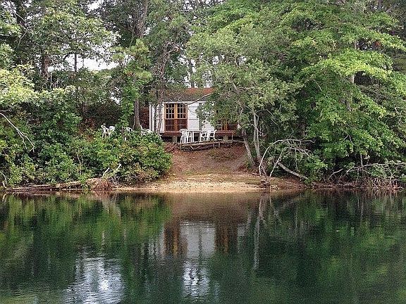"Ivy Woods"- turning back time at this Osterville retreat. This waterfront property is a hidden gem sited on Neck Pond with 380+ ft. of frontage and 2.25 acres of land. The pond views are peaceful while the wooded lot makes you feel like you are at a camp retreat. The Main House was built in 1914 & retains the charm of its original architecture with pine wood floors, 2 wood-burning fireplaces, wood paneled walls, 5 bedrooms, 4 baths, sunroom & enclosed porch. The contemporary Deck House was built in 1968 & has glass walls and a sizable deck overlooking the pond; with 2 bedrooms & 2 baths you have plenty of room for family & friends. The boat house & picnic area make a great play room & entertaining space on the shores of the water. There is also a 3 bedroom/2 bath guest cottage on 360 Parker Rd. Enjoy the property as is, or build your dream home!