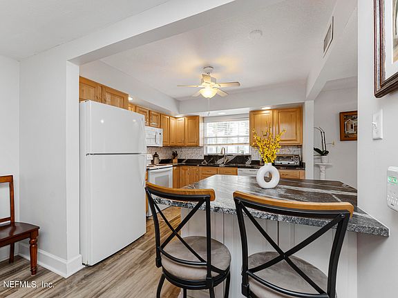 Beautiful 3 bedroom, 2 Bath Condo in a very central location. Close to Downtown, shopping, 295 and still just minutes to the Beaches. This condo has had extensive renovations done including new flooring downstairs, updated kitchen with Granite and a beautiful Granite Island which turns this into a beautiful open floor plan. Large dining room as well as an eating space near kitchen gives ample room for entertaining and seating for your many guests. There is also a 1/2 bath off the kitchen for convenience. Enter into an open area before you arrive at the patio which features a beautiful awning for shady seating. Upstairs you will find 2 bedrooms upfront and the Primary with its en suite bath and huge walk in closet. Laundry is located in upstairs hallway as well as storage and 2nd Bath. Water Heater new in 2021, Washer and Dryer new in 2020.