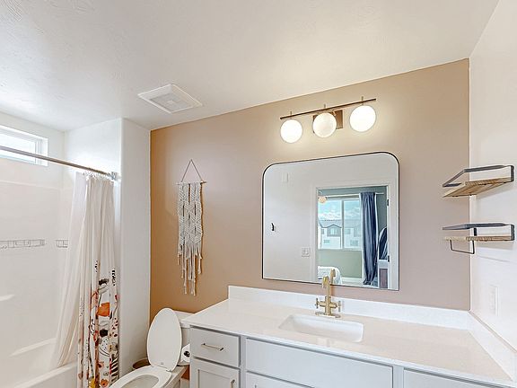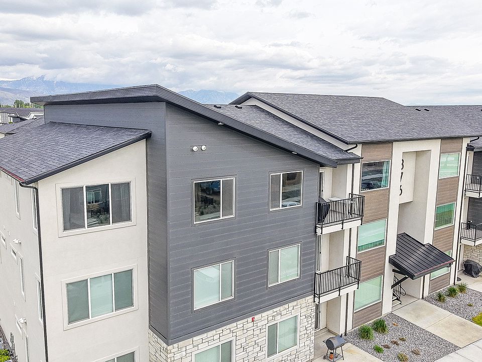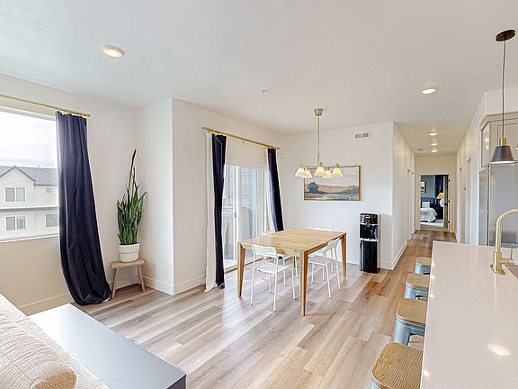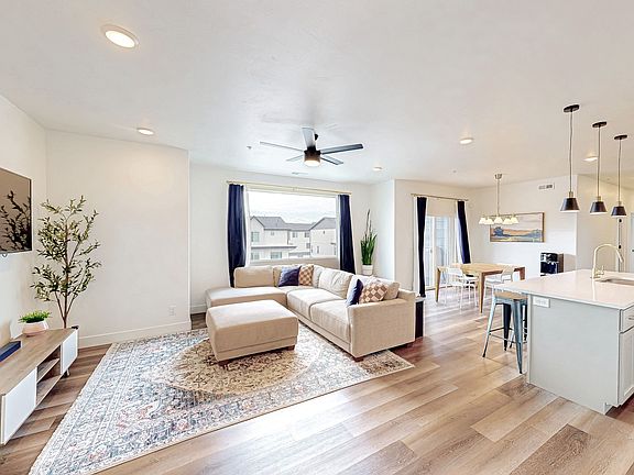 Top Floor Condo with Oversized windows that allows for natural light to pour through! Open floor plan from the moment you walk through front door. Upgraded quartz counters, brass fixtures, accent lighting and moody accent walls. 1 car garage, 10 minutes from Silicon Slopes and 30 minutes from Downtown Salt Lake.