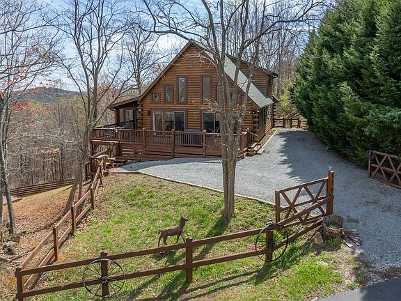 Custom built 3BR cabin w/year-round Eastern view in the gated community of South Mountain Peaks. Well maintained home w/loads of great features. Full-length side deck wraps around to full-length screened front porch. Interior features include great room w/gas-log fireplace & cathedral ceiling, sliding glass doors & lots of windows take advantage of natural light, kitchen w/large breakfast bar, 2 main floor bedrooms (one could be used as a primary), and primary bedroom w/small loft & bathroom upstairs. Walk-in crawl space. Storage shed. View can be expanded w/some select cutting. Call for additional information.