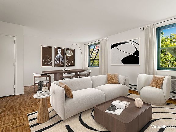 Move in now and fall in love with the classic retro charm of the newly refinished original parquet floors that flow throughout the home. Or reimagine it for open concept living and add a full ensuite bathroom. This top-floor serene retreat is approximately 900 square feet of pure possibility spread across a spacious living/dining room with tree-top views, well-separated by a hallway of closets from two generous king-sized bedrooms with water views. It's the perfect layout for sanctuary and productivity with a home office for those working remotely in the BEST neighborhood in NYC, the West Village.