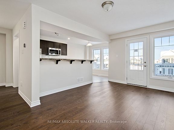 Discover the perfect blend of style and functionality in this exceptional Thornbury End model by Mattamy. As you step inside, you will appreciate the smart layout of the main level, featuring a convenient powder room, a well-appointed laundry room, and direct access to the garage, making daily life a breeze. The spacious and inviting great room boasts rich hardwood floors, seamlessly connecting to the dining area. Enjoy effortless entertaining with easy access to the balcony, a fantastic spot for relaxing and hosting BBQs.The eat-in kitchen is well equipped with elegant shaker-style cabinets and modern stainless steel appliances. The third level features three generous sized bedrooms and the 3-piece bathroom completes this level. Located in a fantastic community, this home is just minutes away from schools, shopping centers, and public transit, making it perfect for families and commuters alike. Don't miss the opportunity to make this stylish Thornbury End townhome your new residence! Available October 1st, 2025