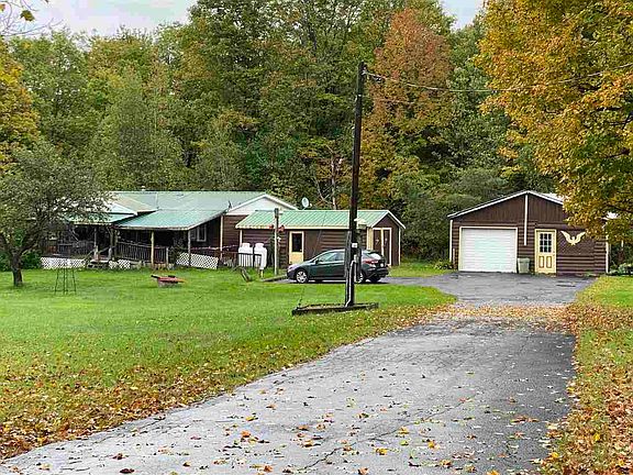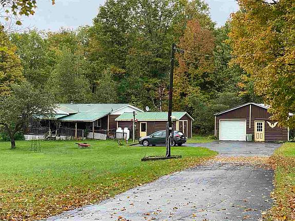 Located in the foothills of the Adirondacks and an easy drive to Canton, Potsdam, Saranac Lake and Lake Placid. Manufactured by Castle Housing this 28 X 44 three bedroom, 2 bath home is situated in 1.08 acres in a quiet country setting. Open floor plan. The paved drive has a turn around and leads to the detached garage. At one time this was a two car garage but is currently used as a one car garage with a work shop. 200 am CB panel in the garage. Property also features a covered deck on the front of the home, enclosed porch on the back and a storage building. Home is heated by a Miller FA oil furnace and a Rinnai propane monitor heater. Merriman's is the service provider. 100 amp CB electric panel for home. Whirlpool 30 gallon electric hot water heater. 100' drilled well. The septic system is located to the left of the home with grey waters The Solar Max solar panels were installed in 11/19. Average monthly electric is $20. Wonderful home for many types of buyers!!