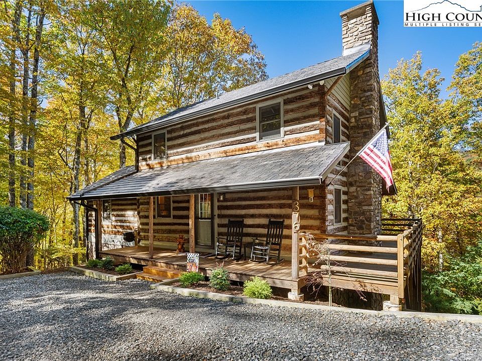 across the Blue Ridge horizon. A second covered lower-level deck provides an inviting space to