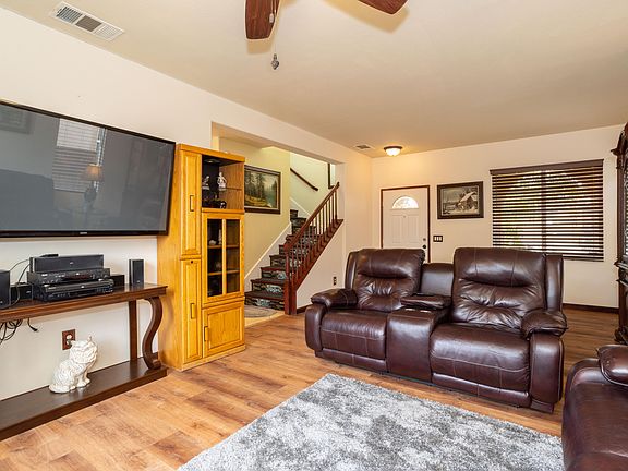Beautiful home located in a highly desired neighborhood. Built in 2003, it Features 2,270 sqft house on a 7,017 sqft lot with an open floor plan along with 4 bedrooms, 2 1/2 bathrooms. Master is a large suite with a massive 8'x16' walking in closet. New vanity was redone in the master bath recently. The laundry room is located on the 2nd level, close to all the bedrooms for convenience, it has a sink, both full size washer and dryer are included with the sale as well. Kitchen is updated with cherry wood cabinets, all stainless steel appliances are included with the home. The staircase was recently finished with beautiful mosaic tiles. Looking for a large yard for the family? This is it.... plenty of space for parties and outdoor activities, has a concrete patio area along with a side yard that is 30' x 15' ft for extra space. Garage has rubber flooring and tons of cabinets for storage. Central AC and heat along with a new water heater, House is located on a cul-de-sac st.