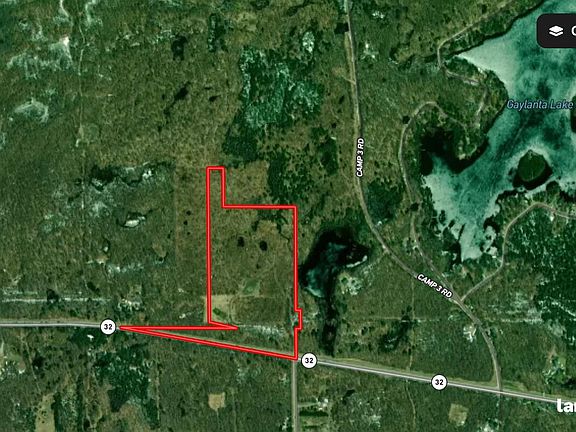 This 33+ acre wooded parcel offers the perfect Northern Michigan hunting camp or weekend getaway. A cement block cabin and storage shed sit among mature hardwoods with established trails throughout the property. Electric and water are on site (condition unknown), giving the next owner a solid base to improve or enjoy as-is. Located west of Gaylanta Lake, this land provides excellent deer, turkey, and small game hunting, plus easy access to nearby lakes, ORV trails, and state land.