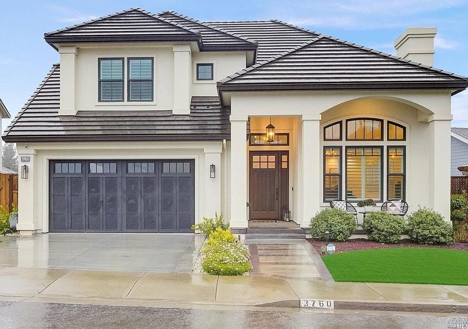 Stunning Fountaingrove Custom Home. Located on a quiet street, this forever home was completed in July 2021. No expenses were spared to create this distinctive home. The contemporary open floor concept, the high ceilings, the wide plank white oak flooring, the many large windows and arches, the Restoration Hardware and Rejuvenation light fixtures create an inviting, spacious, yet cozy living space. The kitchen features a wet bar, a pantry, a large island with quartz countertop, 48" Wolf gas range and pro hood, Sub Zero fridge, and Bosch appliances. The two sinks have built-in under-counter water filters. Solid maple cabinets with pull-out shelving. The main floor bedroom is currently used as an office with barn doors. The upstairs primary bedroom and its sitting area capture the views. The large walk-in closet and the stunning spa-like bathroom complete this serene space. Two other bedrooms, a bathroom, and the laundry room are also on the second floor. The outdoor space offers a large deck, raised garden beds, citrus trees, and low maintenance landscape. Premium tile roof and many high energy efficiency upgrades, too many to list. This is a unique, not to miss, remarkably cared for home.