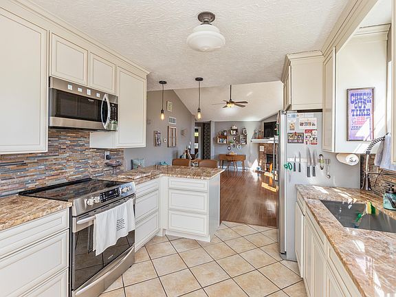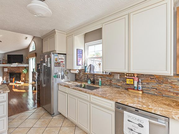 Welcome to this Beautifully Maintained Home Situated on a Corner Lot Featuring an Updated Kitchen with Soft Close and 15" Deep Cabinetry, Granite Counters, Peninsula Seating, Farmhouse Sink and Newer Appliances. Main Living Areas Offer Floating Engineered Hardwoods, New Interior Doors and Trim and a Cozy Wood-Burning Fireplace. Step out the Patio Doors to a Wonderful Back Yard Oasis Including a Full Privacy Fence, Concrete Patio and Fire Pit. The Primary Suite includes a Double Sink Vanity, Garden Tub/Shower, and Walk-in Closet. Major Mechanicals Replaced in 2024: NEW FURNACE WITH AIR PURIFIER and HUMIDIFIER, WATER SOFTENER, WATER HEATER, AND AC. Additional storage includes Pull-Down Attic with Flooring, Shelving, and Lighting. Move-in ready and full of modern updates! THIS QUALIFIES FOR 100% FINANCING!