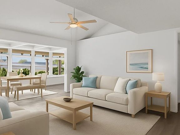 New roofEnclosed lanaiWalls of windowsBright additional living spaceHigh ceilingsNew vinyl flooringClean white cabinetry