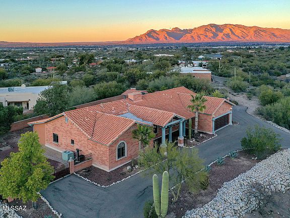 This 1 acre Tucson Mt foothills home sits on an elevated lot, with no HOA and panoramic views. Circular driveway leads to a welcoming front entrance. The open floorplan with cathedral ceilings, a ceiling height stone see-thru fireplace and a light and bright kitchen with granite counters and breakfast bar makes for a warm and inviting living area(s.) The spacious dining room, split bedroomfloor plan, bonus room off of the Owner's suite and abundant extra storage throughout allow for a very live-able home with many multi-use spaces. The large and enchanting backyard includes a ramada w/ fireplace, mature citrus trees (pomegranate, orange, apple, mandarin, lemon, grapefruit, apricot, grape, key lime) & extended patio surrounded by views in all directions. See upgrade list in docs.