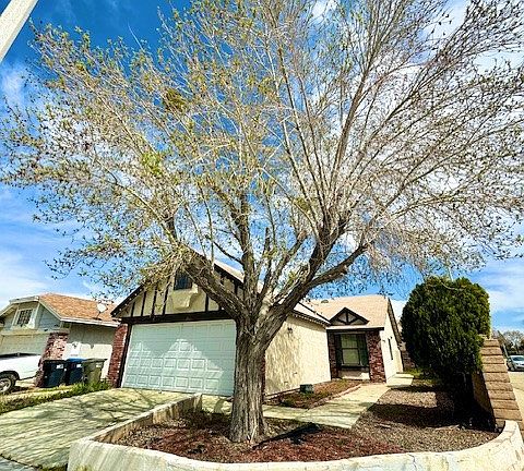 Welcome to this charming single-story home, situated in a peaceful Palmdale neighborhood. This delightful property boasts 3 bedrooms, 2 baths, and features new wood laminate flooring throughout. With a newer roof, central AC, and updated bathrooms sporting modern fixtures, this home offers both comfort and style. The living and dining area is accented by a newly installed barn sliding door, complementing the redone cozy fireplace. The kitchen is a chef's dream, with a breakfast area, granite countertops, and stainless steel appliances. Natural light floods the living and kitchen areas through glass sliding doors, leading to the serene backyard. Outside, you'll find a brick patio with a pergola, pomegranate and lemon trees, and aloe vera plants. Conveniently located near shopping and schools, with easy access to the 14 freeway, this home is perfect for commuters.