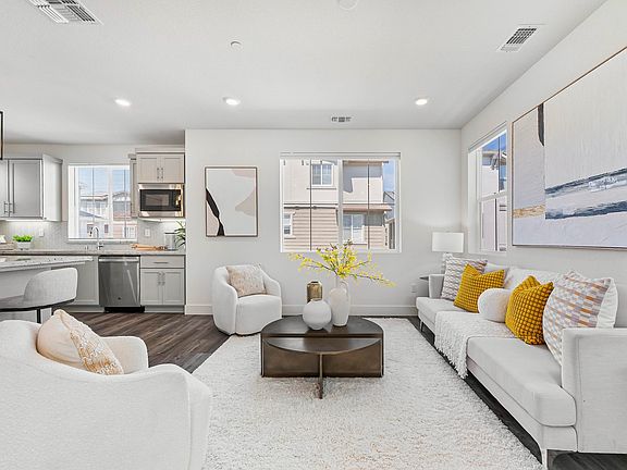 Modern living at a corner lot home! Boasting 1,984 square feet of bright, thoughtfully laid-out space, this 3B/3.5B residence offers 3 spacious bedrooms, each with its own private bathroom, ensuring comfort and privacy for all. A standout feature is the expansive suite on the ground floor, complete with a private bathroom, ideal for guests or multi-generational living.The open-concept living area features upgraded flooring, leading to a dining area connected with a covered patio, perfect for seamless indoor-outdoor entertaining. Cook with ease in the upgraded kitchen, which includes sleek stainless steel appliances, modern countertops, and ample cabinet space. This home is positioned in a prime location that offers both convenience and tranquility. Owner of the house may enjoy the amenities of the community, including a clubhouse, swimming pool, playground, and BBQ area. Nearby National Wildlife Refuge offers open space with trails and nature to explore. The community is close to Meta and Tesla, among other major employers. Easy access to Dumbarton bridge and I-880.