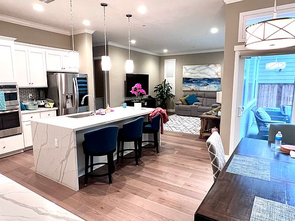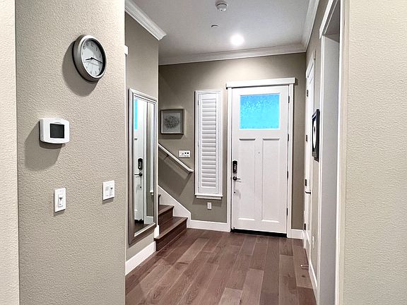 Rarely available 2410 sqft luxurious single family home located in Glass Bay community, easy commute to high-tech companies (Facebook, Tesla, Google, etc) - Two story, 4 bedrooms, 3 full baths, with a loft on second floor - One bedroom and one full bath downstairs, perfect for guests or parents - 9 ft ceilings throughout - Hardwood floor throughout except bedrooms with upgraded carpets - Gorgeous gourmet kitchen with upgraded premium cabinetry and backsplash - Large kitchen island with waterfall quartz counter top, perfect for breakfast - High quality stainless-steel appliances - Large pantry perfect for storage - Spacious master suite with walk in closet, double sinks, and highly upgraded over-sized Master bathrooms - Crown molding in family room, kitchen and master bedroom - Recessed lighting throughout - Dual pane windows with custom shutters - Dual-zone cooling and heating systems - Tesla car charge port in the 2-car garage - Minutes away from I-84, I-880 - Available 02/08/2026