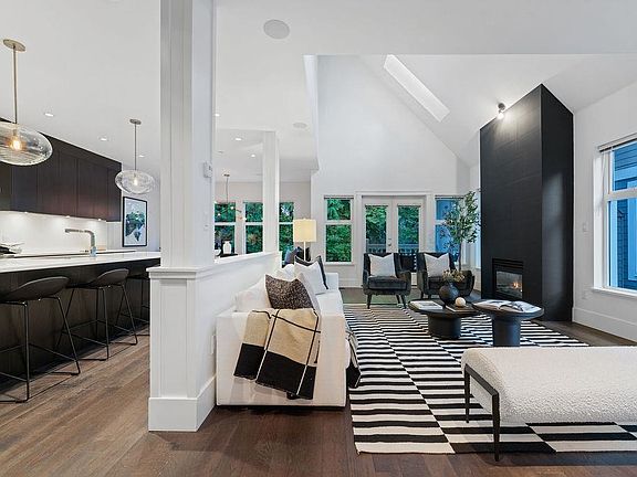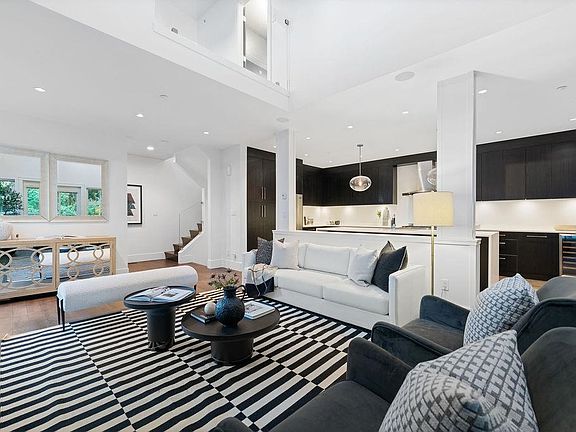 A completely redesigned FOUR bedroom + office, 4 bathroom duplex-style townhouse offering nearly 3,000SF of thoughtfully curated living. Soaring vaulted ceilings, skylights & wide plank hardwood floors enhance the open concept main floor, French double doors leading to a large PRIVATE fenced yard w/ built-in Weber BBQ island. Chefs kitchen fts. 10-ft quarts waterfall entertainers island, black oak cabinetry, ample storage, Jennair S/S appliances & a built in banquette. Stunning steel+glass staircase leads to 3 light filled bedrooms & an impressive primary suite with lofted office, vaulted ceilings, walk-in closet & ensuite w/ soaker tub, walk-in shower, double vanity and in-floor heat. Lower level includes a media room, gym, & a fully finished nanny suite w/ separate entry & 2 car garage.