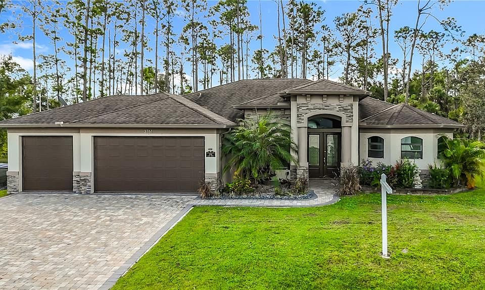 Welcome to this stunning custom 3-bedroom, 2-bathroom home plus den, perfectly situated on a spacious double lot in the desirable North Port Estates area. This beautifully designed property offers exceptional curb appeal with decorative stone accents and a 3-car garage with a 3-car driveway. Step inside to find an open, light-filled floor plan with elegant finishes and a seamless flow between indoor and outdoor living. The extended lanai is an entertainer’s dream, featuring a fully equipped outdoor kitchen and a sparkling pool, perfect for relaxing or hosting family and friends. With plenty of space for privacy and comfort, this home combines modern luxury with Florida living at its finest. Don’t miss your opportunity to own this remarkable property in one of North Port’s most sought after areas!!!