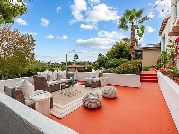 Built in 1929 and beautifully renewed, this Mills Act–designated Spanish Revival home blends historic charm with modern refinement. Set on a generous 7,710 sq ft lot along one of Point Loma’s most admired streets, the residence offers 3 bedrooms, 2.5 baths, and 2,116 sq ft of character-filled living space. Inside, original details such as wood floors and arched openings are balanced by thoughtful updates including a reimagined kitchen, Venetian plaster fireplace, and a spa-like bath with soaking tub. The front picture window frames treetop views while multiple gathering spaces—indoors and out—make the home ideal for both entertaining and quiet retreat. The upstairs primary bedroom includes a sunroom, the perfect spot for morning coffee or curling up with a book. A bedroom on the entry level provides flexibility for guests or multigenerational living. Over the detached garage, a spacious deck offers another place to gather—perfect for soaking in stunning evening skies and connecting with neighbors. Out back, the garden feels like a private sanctuary, complete with a variety of trees, vibrant flowers, DG path, a fountain, and designated spaces for play, dining, and relaxation. With the benefit of Mills Act tax savings, this home offers not only enduring style but also practical advantages. Get the best of both worlds—1920s soul with a tune-up for modern living—at this truly special and unique Point Loma property.