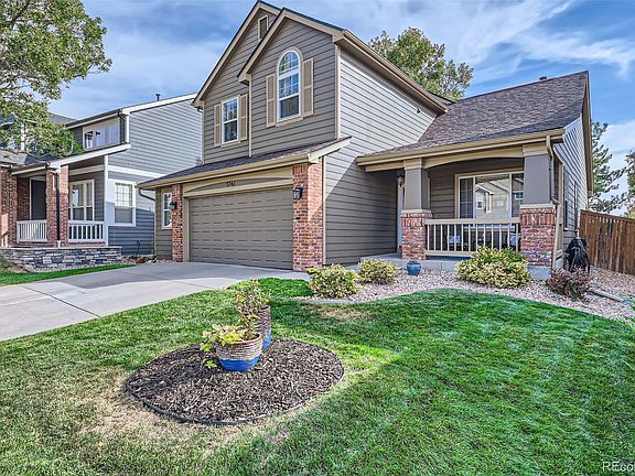 PRICE REDUCED $20,000 this week. So...if you are searching for a "move-in" ready home, look no further. This beautiful two-story home has 4 bedrooms and 4 bathrooms. It's in excellent condition with updates throughout. The formal living and dining rooms (with vaulted ceilings and see-through fireplace) add to the openness and ambience. Updated kitchen opens to the family room and has stylish, white cabinetry, farmhouse-style sink, stainless appliances, and granite countertops. Three bedrooms upstairs, including primary suite with updated bath. Artisan mosaic penny tile flooring in the bathroom and laundry room add to the character of the home. Two secondary bedrooms with full bath and the convenience of an upstairs laundry. Fully finished basement (all permitted) with conforming bedroom, 3/4 bath, study, family/game room and dedicated exercise area. Total finished area 2,565 square feet. Hardwood floors on the main level. New windows upstairs and in the kitchen (2024). New impact resistant roof (2023). New hot water heater (2023). Two-car "oversized" garage. Comfortable outdoor patio, low-maintenance professional landscaping, flat lot with fully fenced backyard and irrigation system. Get out your wish list. This versatile property might check ALL the boxes. HOA includes access to four state-of-the-art recreation centers. Ideal location....close to excellent schools, Whole Foods, shopping, services, C-470, Cougar Run park and miles of running/biking trails. A MUST SEE THIS WEEKEND!