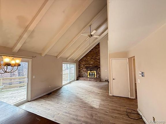 Discover peaceful country living on this beautiful 3-acre wooded property in Metamora. This 1,260 sq. ft. bungalow-style home offers 3 bedrooms, 2 full baths, and incredible potential for the right buyer. The main floor features a dramatic vaulted great room with exposed beams, tall windows that overlook the surrounding woods, and a striking brick fireplace that anchors the space with warmth and character. Enjoy the privacy of mature trees, rolling terrain, and a quiet setting tucked far off the road. A large detached outbuilding adds excellent storage or workshop potential alongside the attached garage. With its serene setting, strong structural features, and renovation potential, this property is ideal for contractors, investors, or anyone looking to build instant equity in a highly desirable area.
