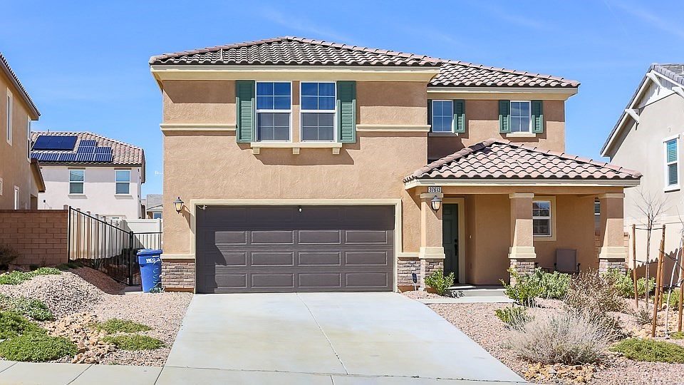 Nearly new 3 bedroom, 2.5 bathroom pool home walking distance to Anaverde Hills Elementary and park. This is one of the few pool homes available on the market in this area. Great curb appeal with drought resistant landscaping with sprinkler drip system. Step into the tiled entryway that flows through to the living room and kitchen. The living room is open and spacious with recessed lighting and opens to the eating area and kitchen. The kitchen is beautiful and perfect for entertaining with black and white granite countertops, large pantry, under cabinet lighting as wells as large kitchen island with bar seating and pendant lighting. Head up stairs to the spacious master bedroom which features a ceiling fan and gorgeous barn yard door to the master bathroom. The master bathroom has dual sinks, soaking tub and separate shower, and walk in closet. The remaining 2 bedrooms are spacious with mirrored closet doors and share a jack and jill bathroom. The laundry room is conveniently located upstairs. The backyard has a beautiful pool for those hot summer days. This home also features a tankless water heater, whole house fan and fire sprinklers. This home is walking distance to the Anaverde Hills Elementary School as well as a park.