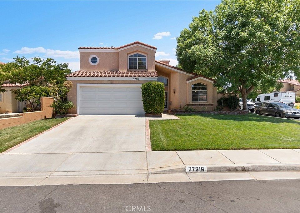 Stunning Corner Lot Home in Prime Palmdale Location!!Welcome to this beautifully updated and well maintained 4-bedroom, 3-bathroom home, proudly offered for the very first time! Perfectly situated on a desirable corner lot, this residence is surrounded by lush, manicured landscaping—offering exceptional curb appeal and a tranquil setting you'll instantly fall in love with.Step inside to a light-filled interior freshly painted throughout, where high ceilings and an open-concept layout create an airy, welcoming atmosphere. The living and dining areas flow effortlessly, making this home perfect for both relaxed living and stylish entertaining.At the heart of the home is the spacious kitchen, complete with pristine countertops, abundant cabinetry, and a charming window view to the front yard—perfect for enjoying your morning coffee while soaking in the peaceful scenery.Ideal for guests or a home office, the first-floor bedroom and full bathroom offer flexibility and privacy. Upstairs, you’ll find three additional generously sized bedrooms, each offering ample closet space and comfort.Step outside to your private oasis—a beautifully landscaped backyard that’s perfect for entertaining or simply unwinding after a long day. Whether hosting summer barbecues or enjoying quiet evenings under the stars, this outdoor space is designed for making memories.This move-in-ready gem offers the perfect blend of comfort, style, and function—making it a rare find in today’s market.