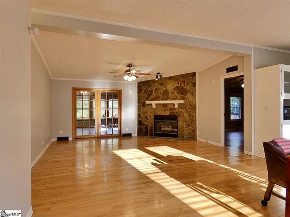 Look! The home you've been looking for is available now! Sitting on 1.60 acres in the very desirable Blue Ridge area of Greer and in the National Blue Ribbon award winning school district, Skyland Elementary, sits this beautifully renovated home. Sit on your spacious deck and listen to the sounds of the creek which borders your property and you will be reminded you are in the country with the sounds of the neighboring chickens and other smaller farm animals. Mature trees also provide privacy to your backyard complete with an above ground pool! Need storage? How about TWO storage buildings, one with built in shelving, on the property ready for your yard or gardening equipment and holiday decorations. If you'd prefer to be indoors you can't beat the beautiful Florida room with a stunning wood ceiling and surrounding views out to the vast yard! The rest of the home is move in ready with hardwood flooring in the living room, dining room and all bedrooms. Brand new appliances, smooth cooktop range and matching hood plus refrigerator perfectly compliment the dishwasher and freshly painted kitchen. As a matter of fact, the entire home has been freshly painted inside. Just bring your furniture, it's ready. Some other noteworthy items include the partially covered back deck which could easily be screened in, pass thru from your master bedroom directly in to the laundry room, cozy gas fireplace, huge breakfast room, new kitchen and bathroom cabinet hardware and new lighting fixtures. The pool filter is brand new and the liner is only one year old. Plenty of space inside and out. Don't wait - come see it today!