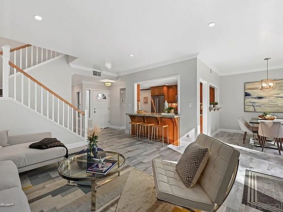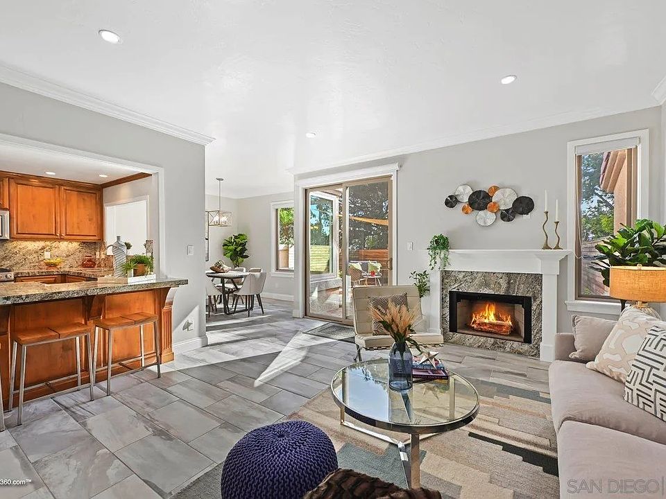 Wow, absolutely impeccable! Bright move-in ready East Bluff home exquisitely remodeled a few years ago! Upscale, quality finishes throughout include well thought out kitchen with custom cabinetry, beautiful granite countertops, higher end stainless appliances, tons of storage, and a breakfast nook also with tons of storage. The spacious master bedroom offers aerial views, custom walk-in closet, dual sink vanity and a wonderful custom shower. The secondary bedroom has its own private, nicely appointed bathroom and nice sized closet. Some of the sellers’ favorite things are the amazing location close to their favorite restaurants and shops in One Paseo, Del Mar Highlands and the SkyDeck; lots of green spaces surrounding the community, great for evening walks to Overlook Park to enjoy the sunsets over the ocean; the spacious walk-in shower; sitting on the patio with friends; and the open downstairs layout for easy entertaining. Other desirable features include a ton of privacy (no homes behind); private, low maintenance back yard/patio with plenty of space for lounging and entertaining; upgraded dual paned windows; custom blinds; finished 2 car, attached garage with custom storage; modern, front loading washer and dryer; super convenient location close to schools, parks, shopping, eating establishments, entertainment, freeways & beaches. East Bluff at Del Mar Highlands is a quiet, well-established community with a pool and spa and steps leading from the community to El Camino Real, making it a very walkable locale. Welcome Home!