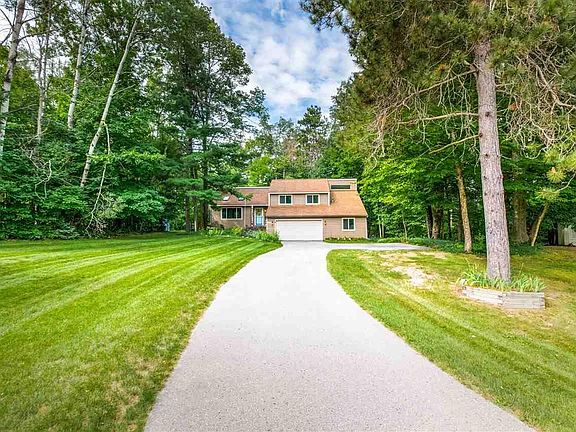 East Side Contemporary home. Large wooded, very private lot. Great backyard with expansive 12 x 22' deck off dining room for entertaining. Many recent upgrades. Maple cabinets & granite in kitchen w/stainless steel appliances. Open living dining area with vaulted ceiling, fireplace & bamboo flooring. Spacious master bedroom w/ walk-in closet. Several multi-use rooms for gym, crafts, etc. Large garage with workshop/storage bay & heated private office w/outside private entrance. Great location near skiing, State land, swimming, boating & many other fantastic recreational opportunities.