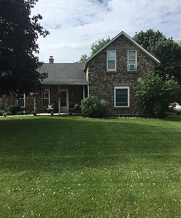Very charming three bedroom stone farmhouse on a very cozy country setting. One acre with mature trees and many different perennials and many different colors. Attached 3-car garage 32 x 28, along with additional 28 x 30 detached garage and workshop area, garden shed, newer chicken coop. Lots of storage space for all your toys and hobbies. Updates include new paint, new carpet, newer flooring, furnace (2016), water softener owned (2017); wood stove also included. Garden spot gets plenty of Sun; still time to plant your garden.