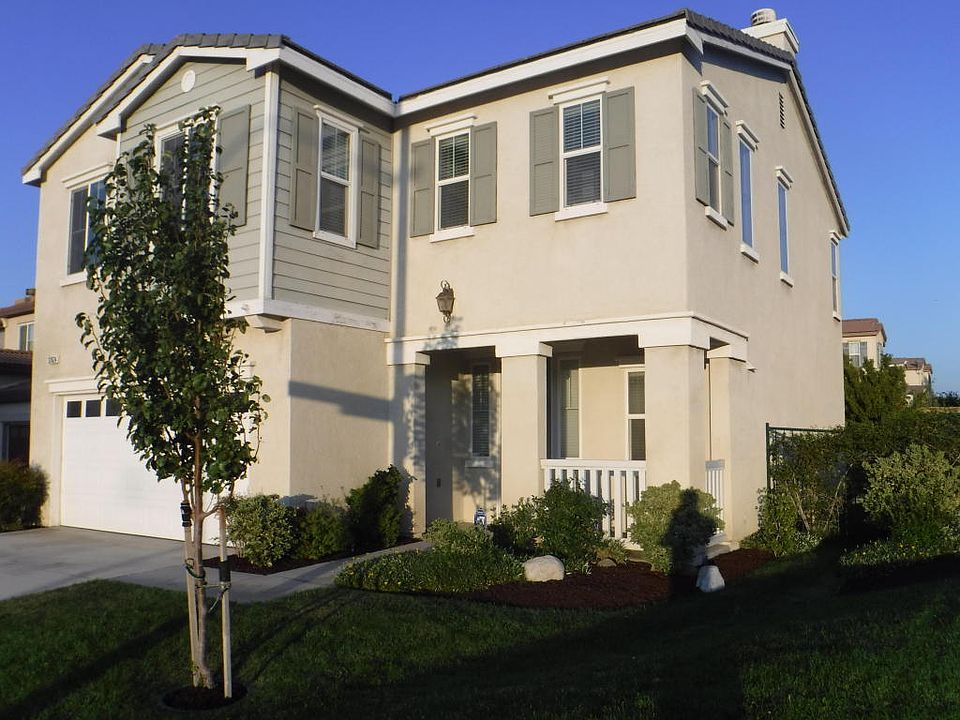 Ready to move in, fast response from local seller on this immaculately maintained Beazer built 4 bedrooms 2 1/2 bath home with an additional loft office on a corner lot. Perfect floor plan with one great room off of upgraded kitchen. Sellers installed corian counters on all kitchen counters including bar/island. Backyard is tranquil with many mature fruit trees and curved custom covered patio. Laundry is upstairs with all 4 bedrooms. Master bedroom has a large walk-in closet, garden tub, separate shower and dual sinks. A wonderful place to call home.