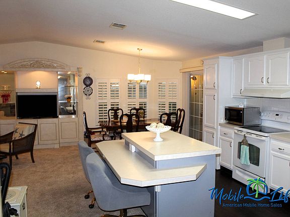 This home is exactly what you have been looking for, fully furnished and stocked, just bring your clothes, toothbrush, and groceries! Even has a golf cart. It boasts 1680 square feet of living space plus an Enclosed Florida room. Ready to move in with park approval. Two bedrooms, two bathrooms, a den, a large laundry area, a large living room, a dining room, and a kitchen are all open. No neighbors to the left side and no rear neighbors. With a bonus that the clubhouse is steps away! Look at all this home has to offer, you will not regret it!!!! About Tropical Acre Estates: For just $599 per month, your lot rent covers trash service, access to the sparkling pool, and a wealth of amenities designed for your enjoyment. Residents benefit from water billed through the park, making it easy to manage your monthly expenses. Join in on the fun at the Residents Club House, where daily, weekly, and monthly activities bring neighbors together. Dive into the refreshing large swimming pool, unwind in the luxurious hot tub, or challenge friends to a game in the onsite billiard room. Enjoy leisure time in the lending library, and lounge area, or engage in friendly competition with horseshoes and shuffleboard. The meticulously manicured grounds create a picturesque backdrop for your new lifestyle. Located in the charming area of Zephyrhills, you'll find convenient shopping options nearby, including Walmart Super Center and Publix Supermarket. Plus, Florida Hospital Zephyrhills is just 5 miles away for your peace of mind. Adventure awaits, as Busch Gardens is only 20 miles from your backyard! Don't miss the chance to call Tropical Acres home, where every day feels like a vacation! While all information is considered reliable, we encourage prospective buyers to conduct their own personal inspections for a comprehensive understanding of the property's condition and measurements. Please note that American Mobile Home Sales of Tampa Bay Inc. cannot guarantee the accuracy of this information. As a buyer, you will be responsible for all closing costs, sales tax, and title transfer fees associated with the purchase. The buyer assumes full responsibility for obtaining all current rates for lot rent, fees, and any pass-on costs, as well as to familiarize yourself with the lease agreement and community regulations. For these details, please reach out to the community or park manager directly. American Mobile Home Sales of Tampa Bay Inc. is not responsible for quoting said fees or policies.