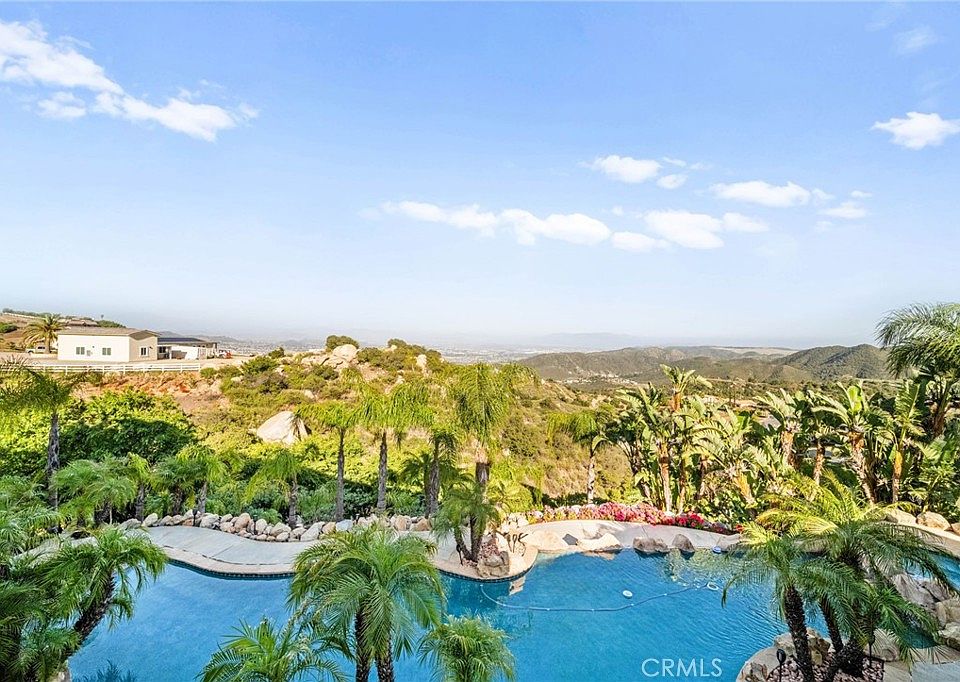 Exquisite Custom Estate with Panoramic Views in Prestigious La Cresta. Discover one of the most extraordinary homes currently available in Murrieta, offering over 6,400 sq ft of refined luxury on more than 5 acres, nestled in the highly coveted La Cresta community. Boasting 4 spacious bedrooms and 4.5 bathrooms, this exceptional property delivers the perfect blend of elegance, comfort, and functionality. Enter through a private, gated driveway to a grand double-door entrance, where you're welcomed by soaring ceilings and a dramatic foyer with rich finishes. The open-concept layout is designed to highlight the sweeping 180-degree views of the Murrieta and Temecula Valleys, visible from nearly every room in the home. Walls of windows and glass doors seamlessly connect the indoor living space to the stunning backyard oasis. Step outside to experience true resort-style living with a sparkling pool and spa, built-in custom BBQ island, and a private guest cabana complete with its own bathroom and shower, ideal for hosting or extended stays. Entertain, relax, and soak in all this property offers. The gourmet chef’s kitchen is a culinary masterpiece, complete with high-end stainless steel appliances, granite countertops, custom cabinetry, a large center island with seating, and walk-in pantry. Entertain with ease in the formal living and dining rooms, breakfast nook, and expansive family room, all showcasing incredible views. A fully-equipped custom bar, complete with sink and mini fridge, anchors the impressive game room featuring a billiards table, shuffleboard, and a temperature-controlled wine cellar. Downstairs includes two private ensuite bedrooms, one is currently utilized as a home office with a separate entrance. Upstairs, two additional ensuite bedrooms with walk-in closets. The luxurious primary suite is a true retreat- enjoy sunrises from your private balcony, unwind in the jetted tub, sauna, or massive walk-in shower, and enjoy the expansive walk-in closet with built-in cabinetry and an adjacent private gym. Additional features include an attached 4-car garage with built-in storage, central vacuum system, water softener, security system with cameras, and a solar power system. Set within one of Murrieta’s most sought-after communities, this property offers tranquility, privacy, and easy access to top-rated schools, shopping, dining, and the renowned Temecula wine country. This one-of-a-kind estate is a rare opportunity-schedule your private tour today!