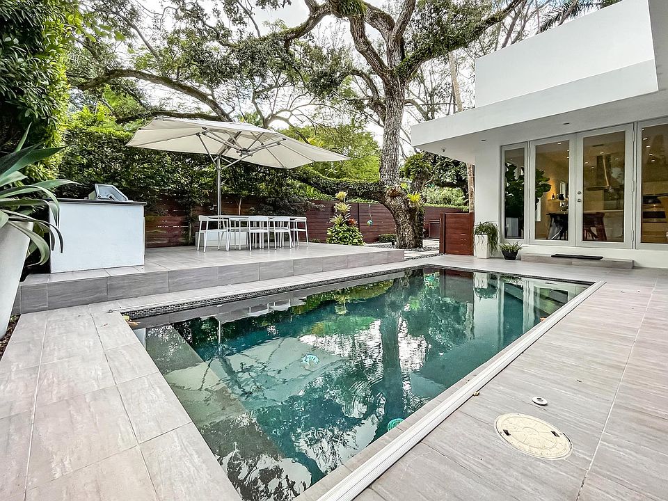 This modern home was built in 2014 and is located in the desirable South Coconut Grove. The property offers 4 bedrooms, 3.5 bathrooms and 2,484 SF of (adjusted) living space. This residence comes with a superb open floor plan, high ceilings, custom lighting, lots of natural light and Italian Porcelain tiling throughout. Additional features are a modern Italian kitchen with Subzero Fridge, Wolf appliances, modern bathrooms, a master bathroom with bathtub, shower and his-and-her vanity, a walk-in closet and built-out closets. This house sits on a 8,500 SF gated lot with a perfectly manicured garden offering magnificent oak and palm trees. The yard is ideal for entertaining boasting a salt water pool patio, Jacuzzi Tub & Summer Kitchen. Close to Miami's best private schools!
