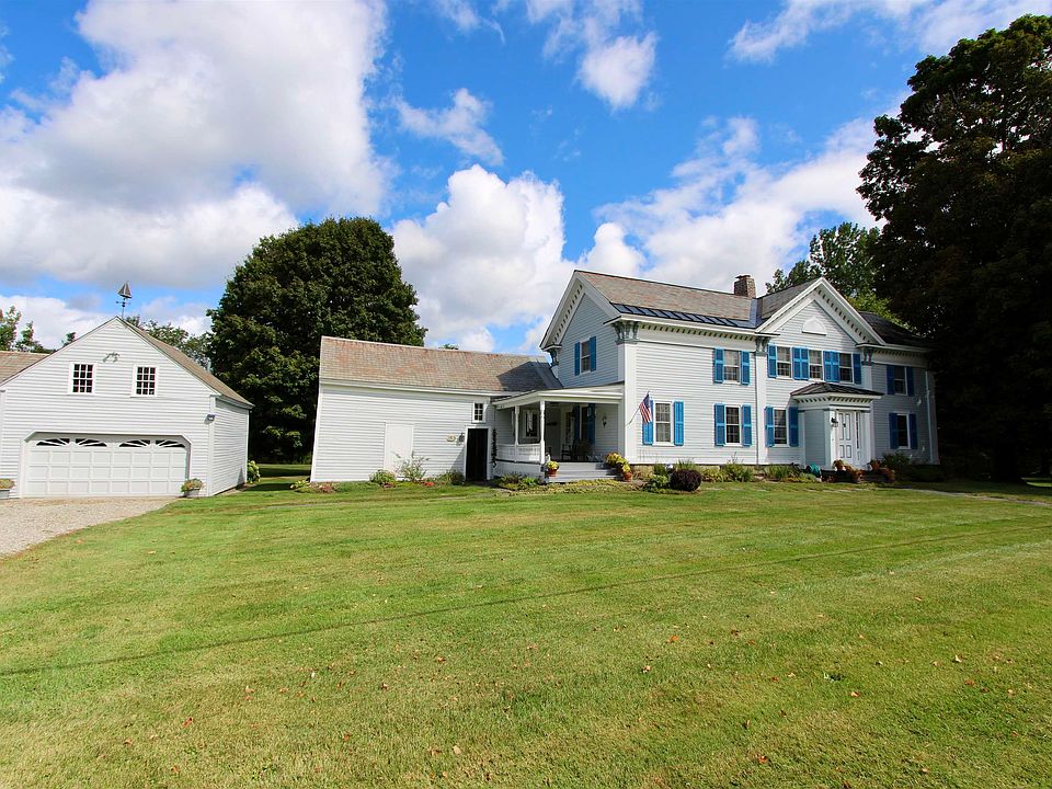 This beautifully maintained 1831 farmhouse in Cambridge, Vermont sits on 2.01 acres just steps from the Lamoille River and only 15 minutes from Smugglers’ Notch Resort. With 5 bedrooms and 2 baths, the home balances historic character with thoughtful updates. Original wide plank floors and timeless architecture highlight its charm, while upgrades include updated plumbing, electrical, slate roof repairs, gutters, and landscaped walkways and gardens. The spacious back deck invites outdoor entertaining and relaxation, overlooking pastoral views and flourishing gardens that create a setting for truly gracious living. Well-kept barns, a garage, and a workshop provide flexible space for storage, hobbies, or small-scale farming. Whether you’re seeking a year-round residence or a Vermont retreat, this property offers a rare combination of history, comfort, and location.