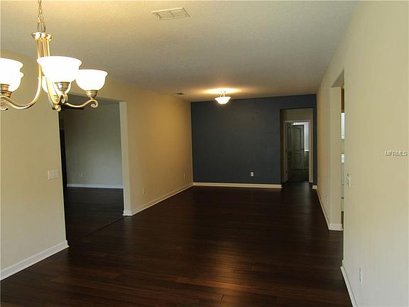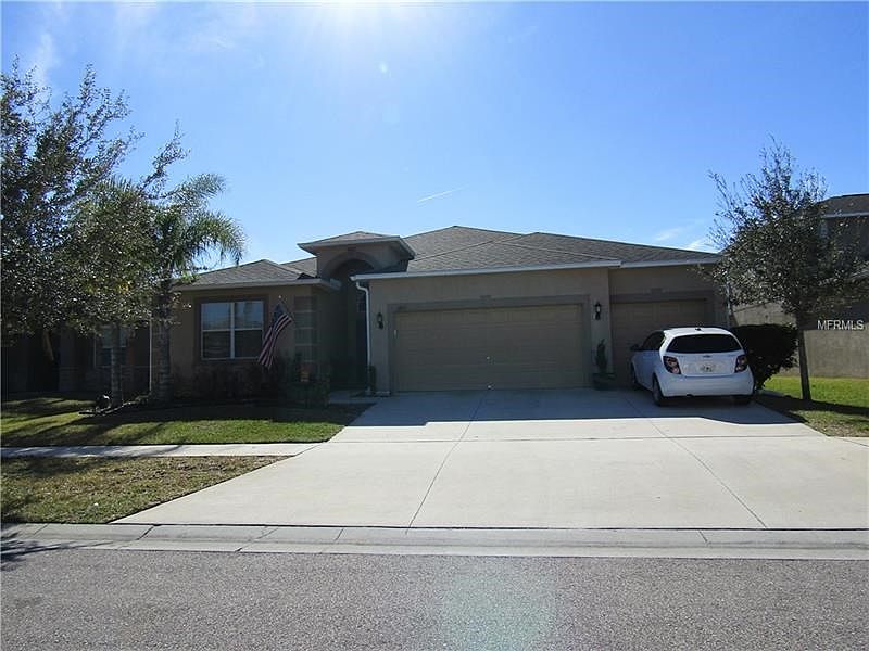 Just listed in Concord Station! This 4/3/3 home has a fantastic layout and is just under 2,600 sq. ft. The floor plan features triple split bedrooms, a very large living room/dining room combination which leads into the spacious kitchen/family room combo. The master suite is off the family room, a guest and third bath is off the living room and the 2nd and 3rd bedroom with a bathroom is off the front foyer of the home. Interior features include, floated bamboo flooring in the main living areas and master bedroom, tile in all the wet areas including the kitchen and carpet in the other 3 bedroom. The Kitchen has a breakfast nook as well as a snack bar, granite counters, plenty of cabinets and a closet pantry. The master bath has dual sinks, large shower and separate tub and the bedroom has his and her walk-in closets Exterior features include an expanded covered lanai with travertine that is fully screened, completey fenced backyard for additional privacy, gutters and downspouts as well as an irrigation system. Concord Station is full of amenities with a Club house, pool, playground and basketball court. They just approved a news splash pool/aqua playground and upgrading the exiting play areas. There are local shops anchored by Publix, not to mention Rushe Middle and Sunlake High schools. Don't miss out as this one will not last!