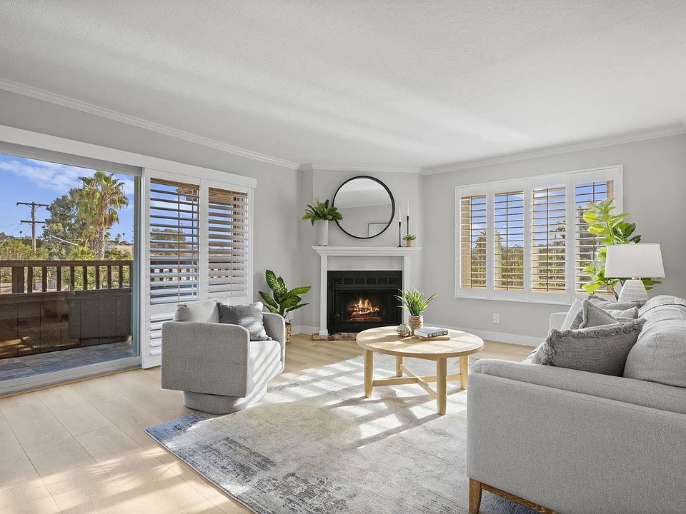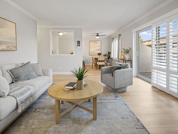 Welcome to Harbor Villas, nestled in the desirable Point Loma and Ocean Beach communities! Enjoy the best of coastal living with quick freeway access, just a 5-minute drive to the beach, and an easy stroll to lively Voltaire Street—home to local restaurants, shops, and fitness studios. This refreshed home features brand-new luxury vinyl plank flooring, triple-paned windows, plantation shutters, and crown molding throughout. The kitchen and bathrooms have been tastefully updated to blend modern style with relaxed coastal charm. Additional highlights include a two-car garage with extra storage, in-unit laundry conveniently located on your private patio, and one of the lowest HOA fees in the area. Experience comfort, style, and convenience—all in one beautiful coastal home!