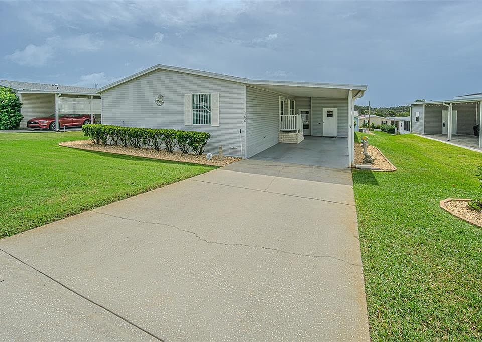 SPECTACULAR SUNSETS from your Updated and MOVE in READY home in the 55+ GATED Community of Grand Horizons! OWN your LAND in this Meticulously maintained Jacobson Home with over $40,000 in Upgraded features! Storm door Welcomes you onto neutral Luxury Vinyl Floors ($8,000) added throughout with Ceramic Tile in the wet areas. Lush Landscaping adds to the Curb Appeal, with accent rocks and lawn art, along with most Exterior Vinyl siding replaced ($10,350) and Anchor Straps installed underneath. Newly painted neutral interior is a blank slate for your decorating. OPEN Floor plan with Living/Dining areas and Vaulted ceiling makes entertaining easy! Galley kitchen boasts white cabinets with Crown molding, Newer 2023 Refrigerator, 2020 other appliances, eat in breakfast nook with sliding doors to Enclosed Florida Room with new flooring and slider windows to extend your living and entertaining space. Owners retreat has been remodeled ($9,500) with a Marble look SHOWER with grab bars, dual sinks, new marble look counters, new mirrors, new lighting, raised commode and huge closet. Split bedroom plan with Primary bedroom with vaulted ceiling located at the rear of the home with huge closet and bath ensuite. Secondary bedrooms have luxury vinyl floors and are located at the front of the home with one set up as a guest bedroom and 3rd bedroom set up as a light, bright office with windows overlooking front lawn. Hall bathroom has skylight, raised commode, new mirror, lighting and vanity. Attached shed is off the 2 car carport and offers storage and area for a workshop. interior laundry closet houses the 2020 Washer & Dryer. Roof is 2010 and AC is 2020 with transferable 5 year AC Service contract. YOU WILL LOVE Living in this community in Zephyrhills where you OWN the LAND and the Residents own their amenities! Clubhouse with Commercial Kitchen for Pot luck dinners, Breakfasts, Billiards, Craft/Sewing/Quilting room, Library with games and puzzles, Onsite entertainment and Travel excursions. Low HOA and no CDD fees with a GREAT LOCATION within 1 mile of Restaurants, Shopping, Theater, Bowling, YMCA, Medical Facilities and Hospitals and easy access to major roads and highways to Orlando, Wesley Chapel, Ocala, Tampa, Lakeland, Airports and the Beaches! CALL TODAY!