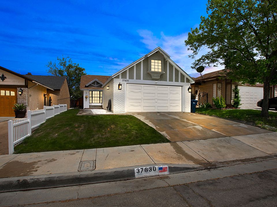 Palmdale MARRO Home. This fabulous home welcomes visitors with a beautifully landscaped and maintained front and Large Rear yard! Home features a great floor plan with a spacious living room and gorgeous tiled fireplace with mantel. Tasteful upgrades throughout. The kitchen offers a cozy dining area, granite counter-tops and stainless-steel appliances. Bathrooms are well-lit with beautiful vanities and decorative mirrors, while the secondary bedrooms and master bedroom are spacious complete with ample closet space! There is also a wonderful backyard with a covered patio, and tons of privacy! Come by and make this your home today!!